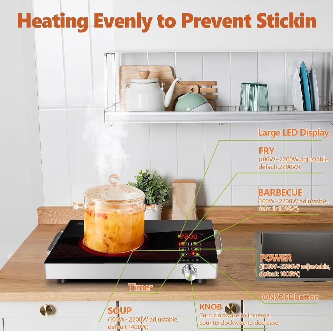 Features a durable, non-slip micro crystal plate that ensures stability during use, making cooking safer and easier. -