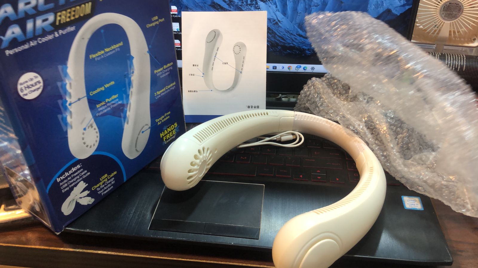- Arctic Air Freedom is a cordless, personal cooler that delivers cool, crisp & refreshing air instantly. Better than a hand-held fan, just slip it around your neck, turn it on & the heat is gone