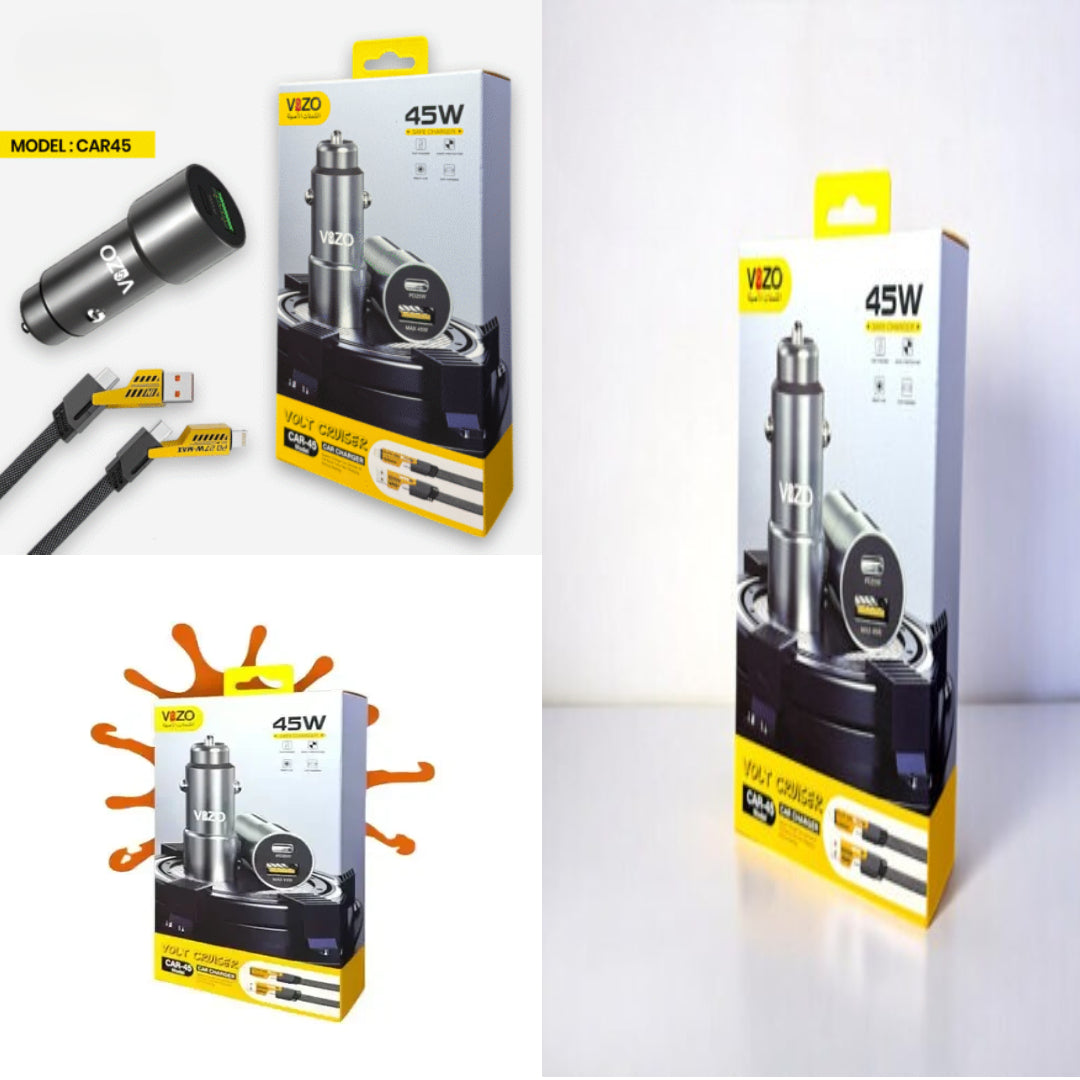 Car45 Volt Series – Dual Port Smart Car Charger (with V999 4-in-1 Cable) | Car Charger - Portable Charger For Car | Vizo Car Charger | Vizo Car45