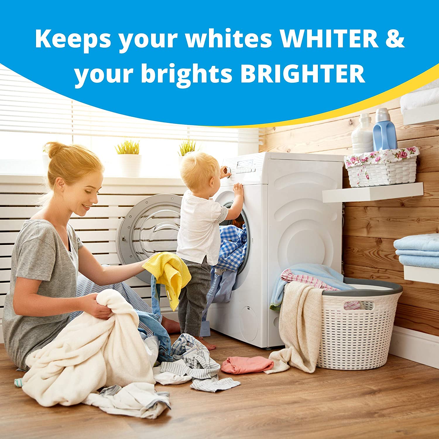 It absorbs and traps loose dyes in the wash, safely locking them away so they can't redeposit on other clothes.